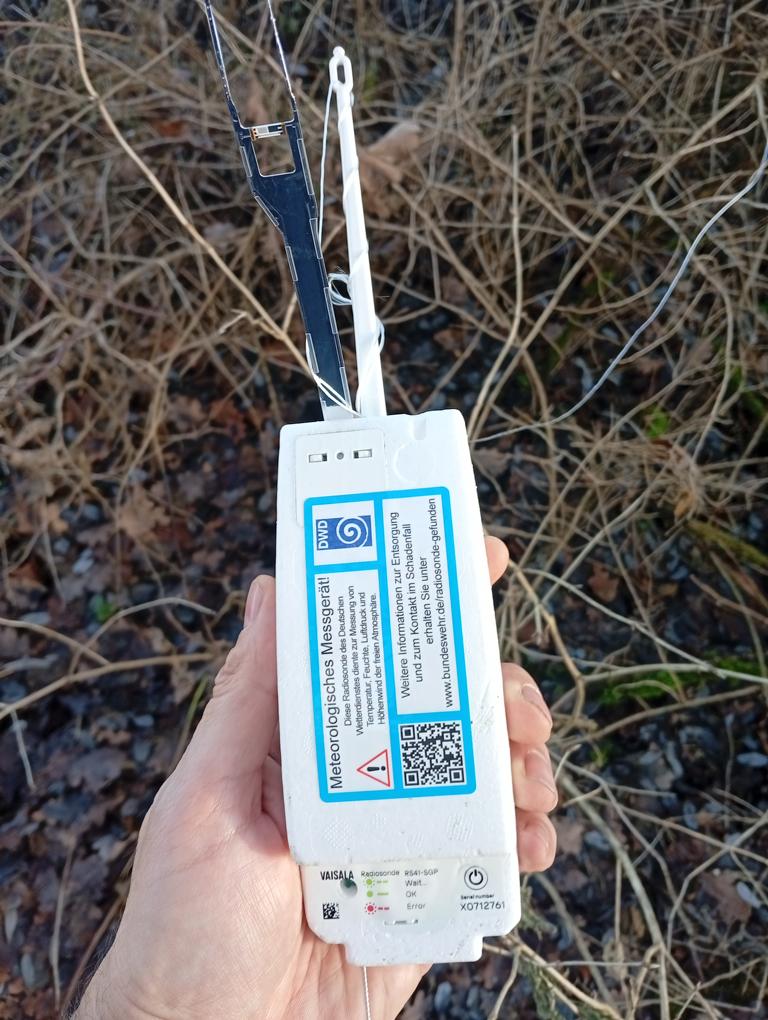 2) 09.12.2025 - X0712761-Stuttgart-Pfaffenhausen bei Mindelheim geborgen - 20.01.2026 - W1130442-Altenstadt-Finning zusammen mit DF9NX gesucht+gefunden 3.) 22.02.2026 - W1150863-IdarOberstein-Ronsberg geborgen neben Kläranlage am Acker 4.) 02.03.2026 - W4030462-Altenstadt-Mauerstetten geborgen aus 7m mit GFK-Rute im Wald - 03.03.2026 - V3331446-Altenstadt-Bernbach geborgen Feldlandung vor Wald - Präsent f. Herbert 5.) 16.03.2026 - X3443493-Stuttgart-Diessen a. Ammersee Gemeinsam mit DF9NX gesucht und gefunden. Direkt neben der Straße hing die Sonde in Griffhöhe, an Schnur über Baum Hausdach in Garten von netter Nachbarin konnte dann auch der Schirm und Ballonreste geborgen werden. Die Nachbarin freute sich über den geschenkten Schirm Schnur und Ballonresten und unser nettes Gespräch. Vielen Dank Wolfram hat Spaß gemacht. 6.) 02.04.2026 - V1220455-Altenstadt-Frankenried Gestreckte Ackerlandung, alles dabei, auf dem Weg zum QRL mitgenommen. 7.) 04.04.2026 - X3452753-Stuttgart-Ketterschwang Gestreckte Ackerlandung hinter dem Wald. Zuerst im Wald gesucht, Signal oberhalb dann auf Feld in 300m weißen Schirm gesehen. Sonde muss an Baumwipfeln gestreift sein, da viele Spuren zu sehen sind ![]() ![]() ![]() ![]() Anleitung zum Umprogrammieren von gefundenen Wettersonden: DOWNLOAD
